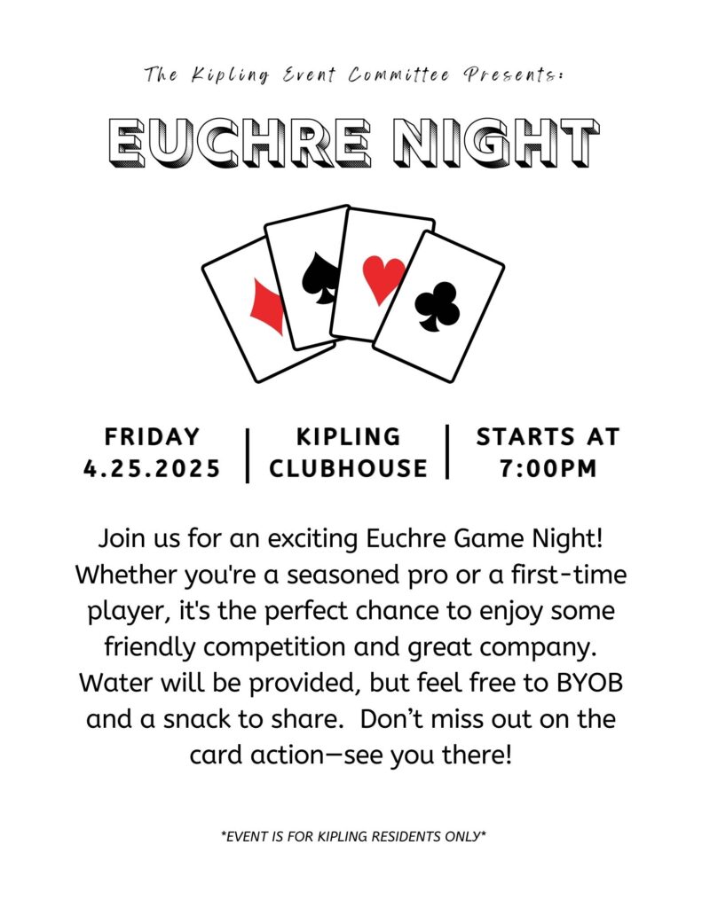 4/25/2025 7:00pm @ Clubhouse: Euchre Game Night